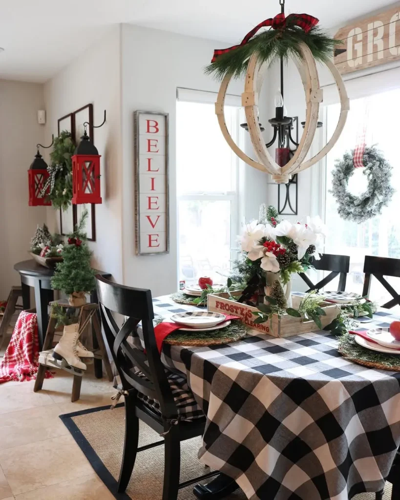 Beautiful Christmas tablescape and room theme using the buffalo check by lifeisaparty.ca.